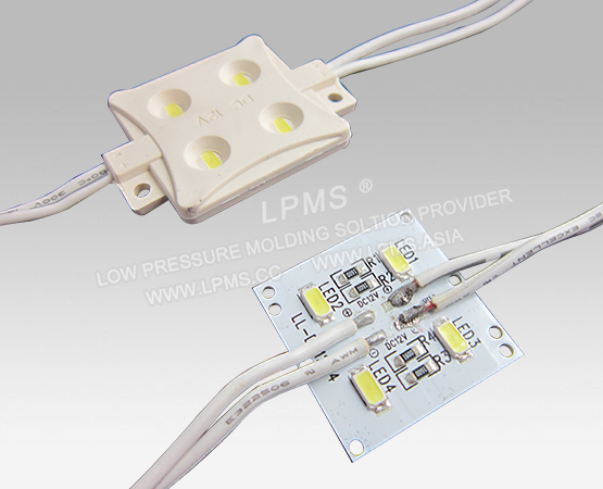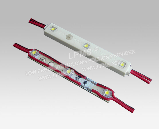 低壓注塑工藝運用於各式LED串燈、LED模組等的防水包封中, 對比傳統灌膠工藝與高壓注塑工藝,具有固化週期短、生產效率高、無損電子元器件、不良率低,注塑好的產品防水等級高等特點,正被越來越多的LED廠商採用。