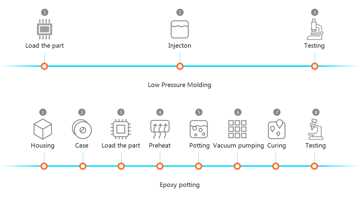 The process between PA LPM and epoxy potting